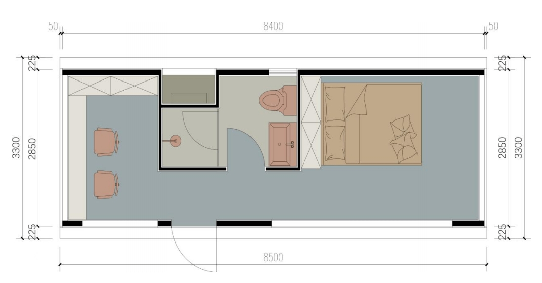 Length:8.5m,Width:3.3m,Height :3.1m; Area:28㎡